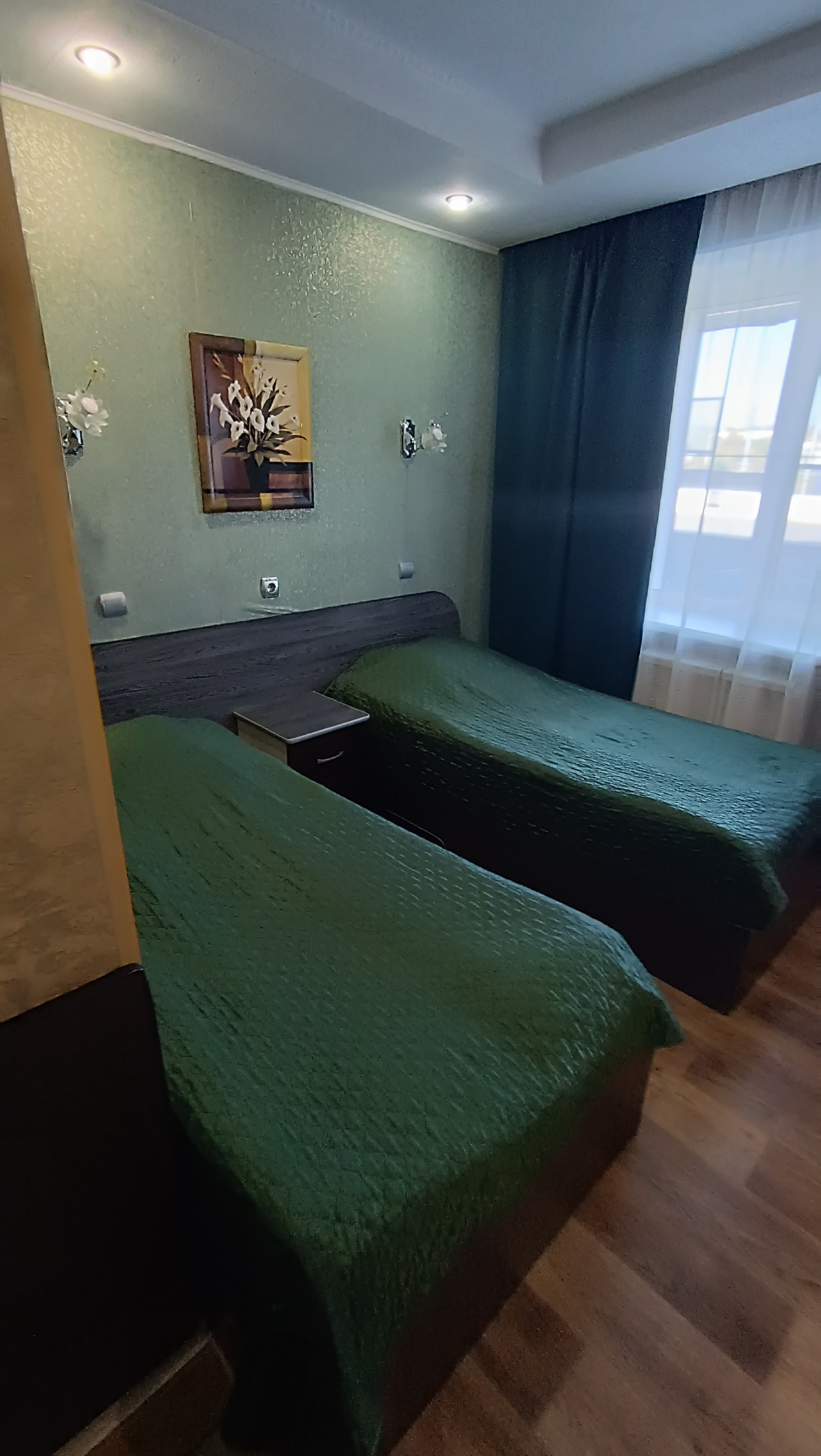 Гостиница расположена в спальном районе города в дали от заводов. В пешей доступности центральные улицы города